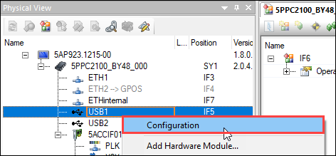 a.在物理视图中,右击一个USB接口,选择 "配置"。